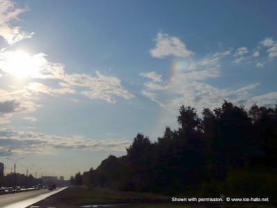 Около пяти утра обнаружила на небе «второе» солнце. День сегодня какой-то неправильный наверное будет) Оставив бесполезные попытки заснуть, долгое время наблюдала за этим удивительным оптическим явлением. Вскоре ко «второму» солнцу присоединилось «третье». Раньше (да наверное и сейчас) считалось, что гало — дурная примета. А по-моему очень мило)) Радуга тоже была, и тоже неправильная: вверх ногами. Зато я желаний столько загадала, что на всю жизнь хватит!))