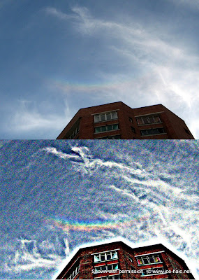 4 сентября 2008, в окно заметил 22° гало на 3-4 гало, практически не заметное, зато на улице увидел зенитную дугу, яркую и красивую, на 5-6 баллов. после дуга пропала, но появился паргелий.